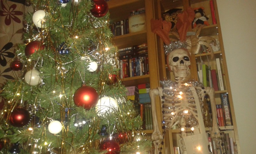 My flat’s decorations were a little on the eccentric side… When you’ve got a Halloween skeleton and very little storage, you make it (her) join in with the Christmas spirit by throwing tinsel and lights at her! Some of my friends think I’m weird. I am. And I’m totally OK with that!