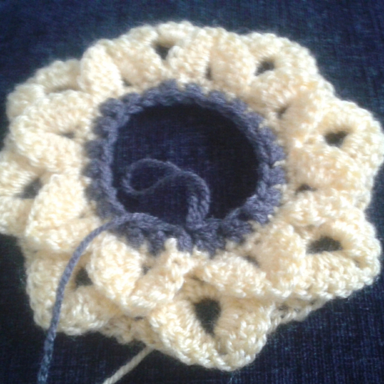 Fasten off, and attach new colour for centre of flower.