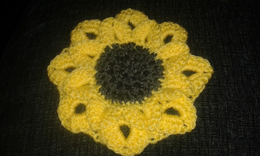 I’ve made a few things lately using the crocodile stitch, which is really simple to do. Just looking at the pattern that this stitch makes, I thought that it was ideal for the petals of flowers. The only trouble is because of the way the stitches overlap, there’s only one way to make it look right, and that’s by starting from the outside!