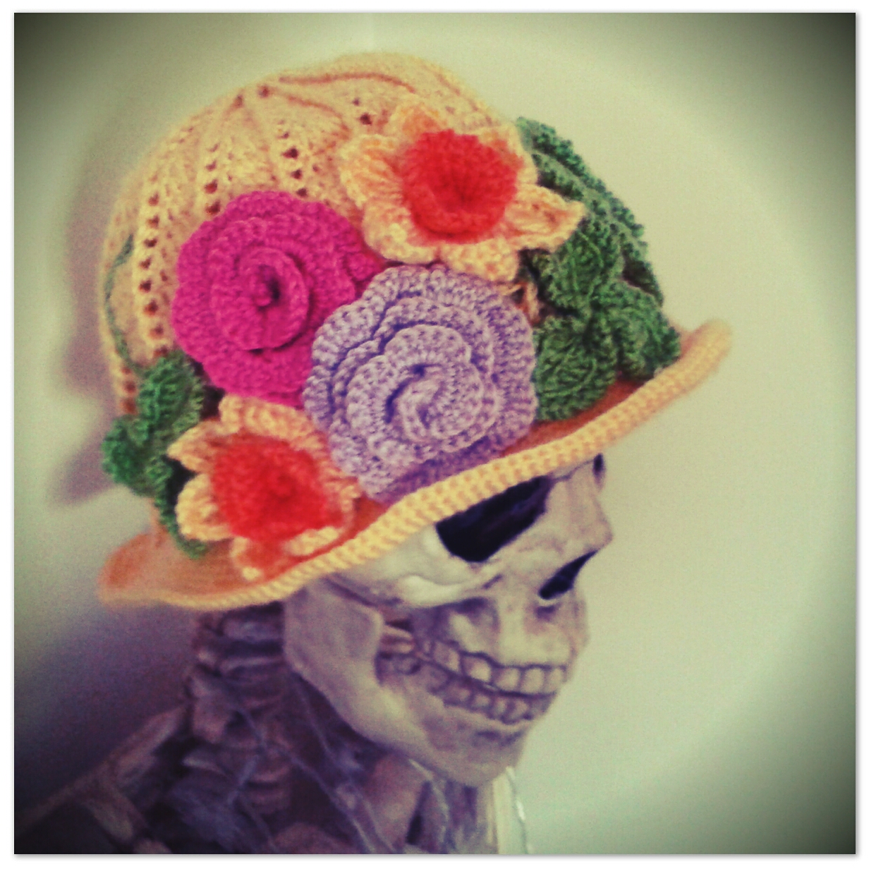 And here it is modelled by my lovely assistant – Sally Skeleton (who’s head just happens to be the right size!)