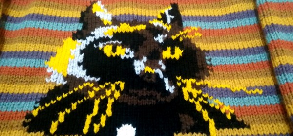 Magical Black Cat Knitted Jumper Design. Memorial to my beloved cat Dennis.